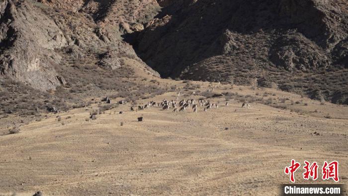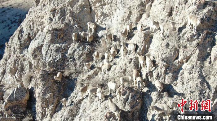 12月中旬,在地處祁連山區(qū)的甘肅肅南縣祁豐藏族鄉(xiāng)吊達坂附近,肅南縣融媒體中心記者拍攝到數(shù)群巖羊在公路旁的山坡上悠閑覓食。據(jù)目測,此次拍到公路旁覓食巖羊約有200多只。巖羊是國家二級重點保護野生動物,體型中等,形態(tài)介于野山羊與野綿羊之間。巖羊具有極高的攀巖技術(shù),可以在絕壁上自由跳躍,一跳可達二三米,因此也被稱為“巖壁上的精靈”。近年來,肅南縣深入推進祁連山國家級自然保護區(qū)生態(tài)文明建設(shè),加強保護區(qū)管理,實施退牧還草等措施,當(dāng)?shù)厣鷳B(tài)環(huán)境逐步改善,民眾保護意識不斷增強,使得當(dāng)?shù)匾吧鷦游飻?shù)量逐年增加。