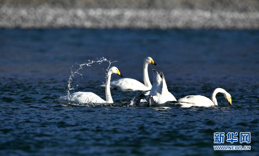 青海省貴德縣:冬日黃河上演浪漫天鵝舞