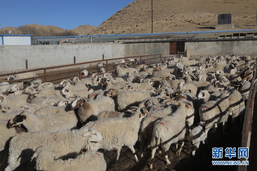 這是1月28日拍攝的青海省海南藏族自治州共和縣興隆肉羊養(yǎng)殖專(zhuān)業(yè)合作社的藏羊。新華社 趙玉和 攝