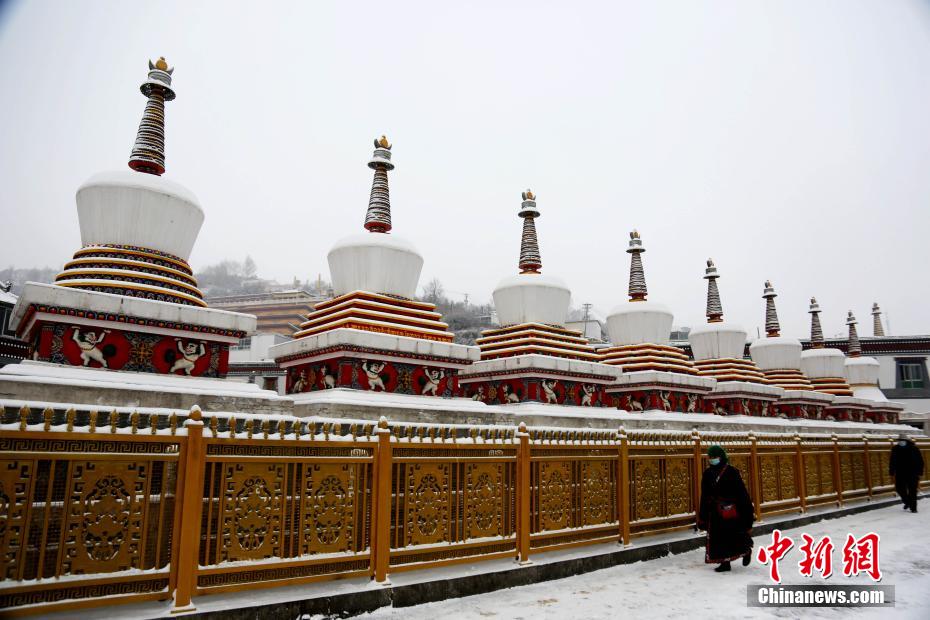 圖為雪后的塔爾寺標(biāo)志性建筑八寶如意塔。 張?zhí)砀?攝