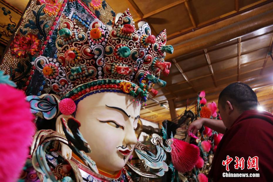 圖為正月十四拍攝的塔爾寺藝僧為主佛做最后修飾。張?zhí)砀?攝