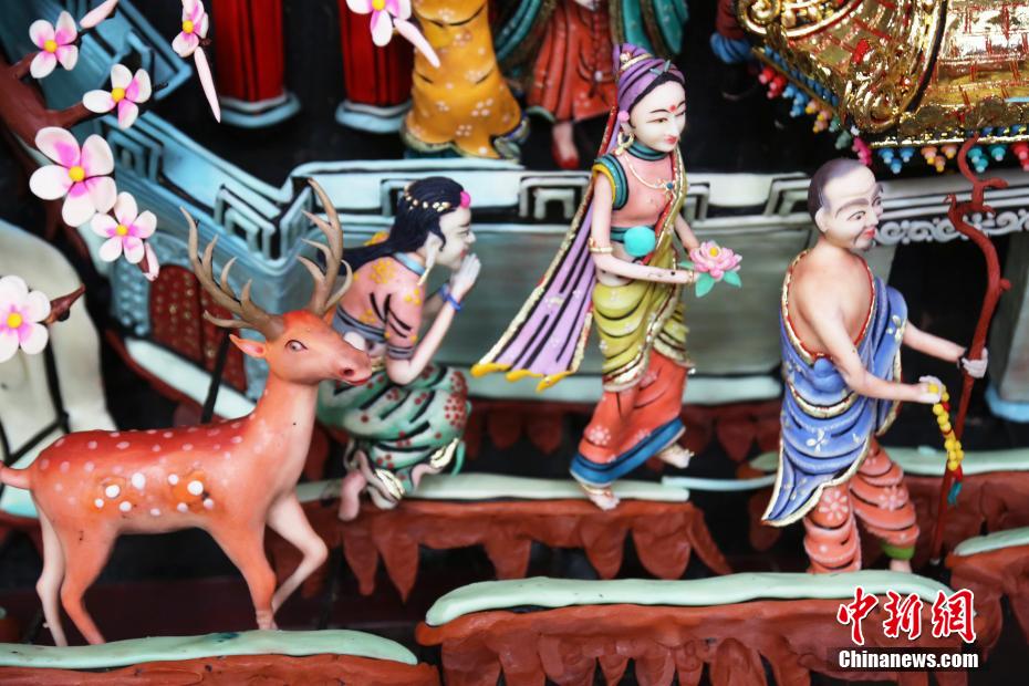 塔爾寺酥油花是中國國家級“非遺”項目,農(nóng)歷正月十四,中新社記者獲準(zhǔn)探訪塔爾寺酥油花制作基地——上、下花院。兩個花院分別用酥油花制作的亭臺樓閣、飛禽走獸躍然花架之上,兩尊一人多高的主佛,面龐白皙、神態(tài)安詳。