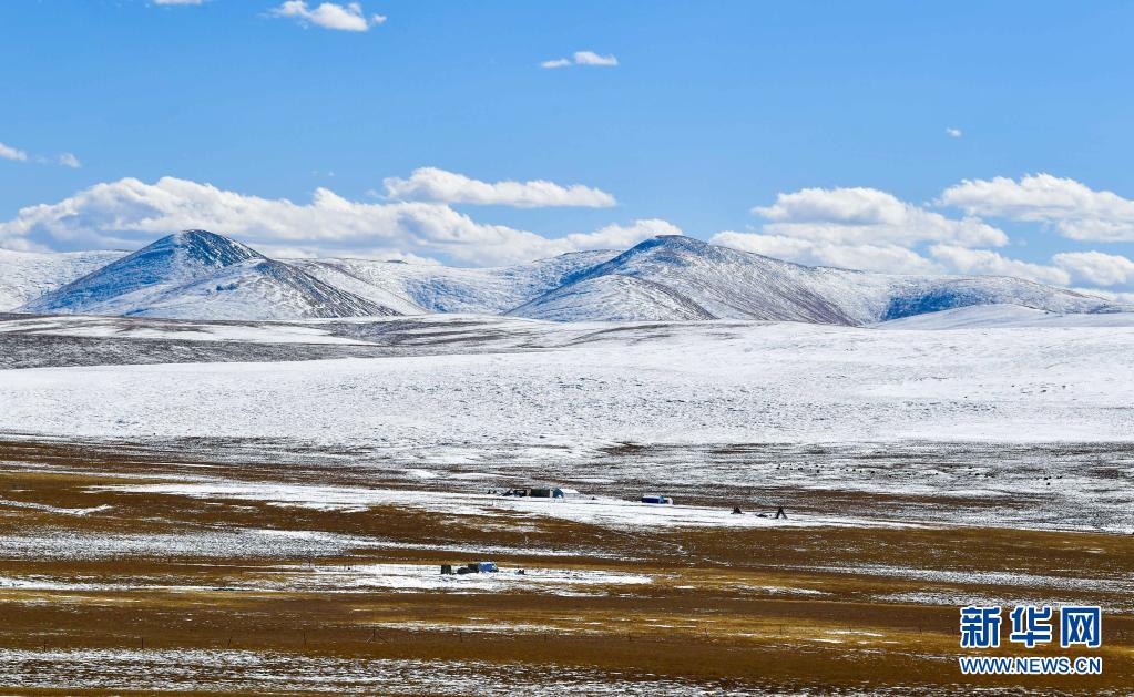 這是在青海省玉樹藏族自治州稱多縣拍攝的雪后牧場(chǎng)(2020年10月29日攝)。新華社記者 張龍 攝