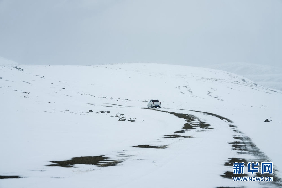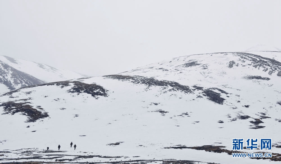 4月23日,祁連山國家公園沙龍灘管護(hù)站的生態(tài)管護(hù)員冒雪徒步巡護(hù)。新華社記者 費(fèi)茂華 攝