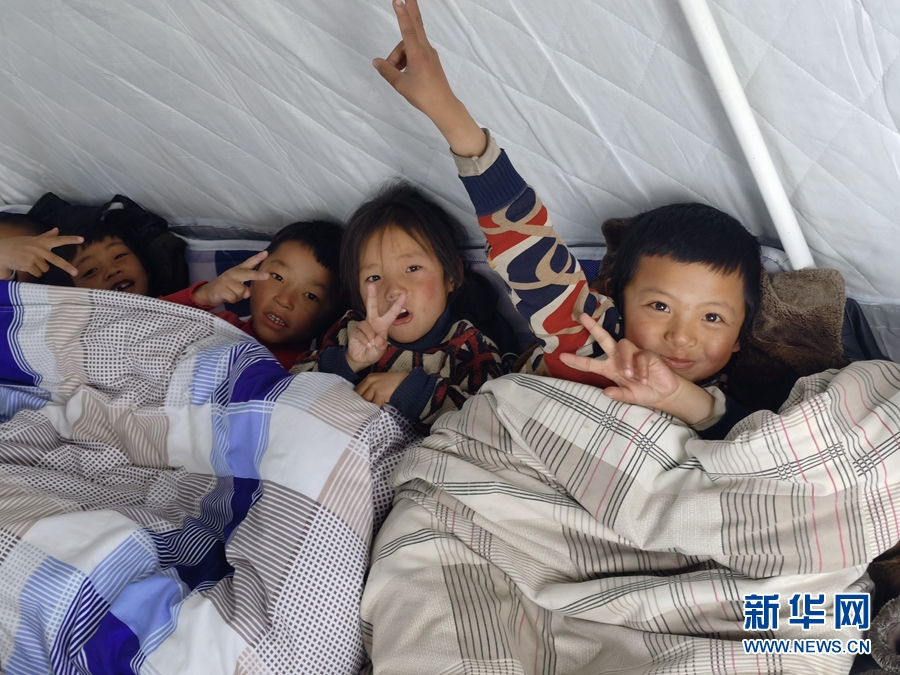 “帳篷里挺暖和,老師們都陪著我們,現(xiàn)在很安心,不覺得害怕?!本拍昙?jí)一班學(xué)生扎西東周說。