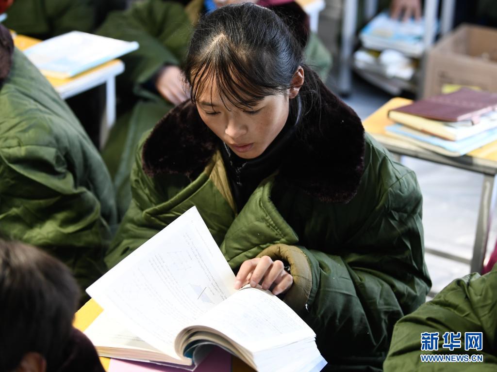 5月24日,曲邁卓瑪在瑪多縣民族寄宿制中學(xué)帳篷教室里讀書。新華社 張龍 攝