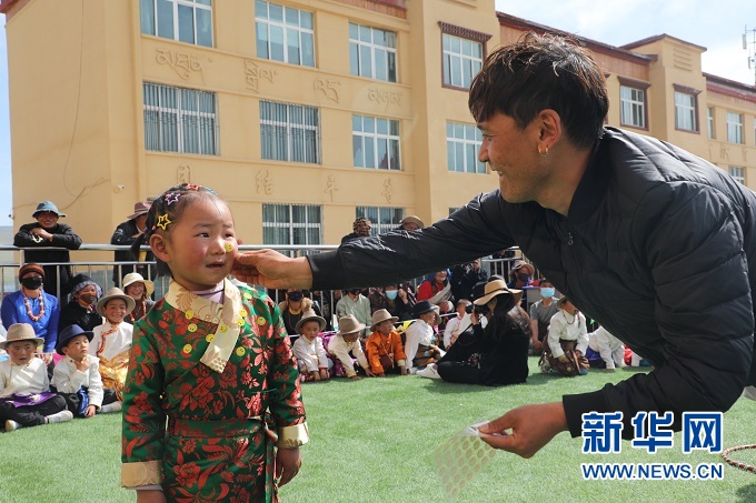 今年的“六一”活動(dòng)上,貢巴幼兒園的小朋友們表演了藏族歌舞、《三字經(jīng)》朗誦等精彩節(jié)目。小男孩們穿上藏袍、戴上氈帽,活潑地跳起鍋莊。小女孩們盛裝打扮,頭上用彩色頭繩編滿了小辮兒,腰間特色銀飾叮當(dāng)作響。親子互動(dòng)游戲笑聲不斷,欄桿外的老阿媽看得興致盎然。