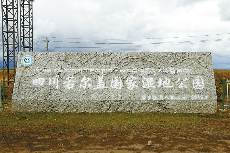 四川若爾蓋國(guó)家濕地公園石碑。四川日?qǐng)?bào)全媒體記者 徐登林 攝