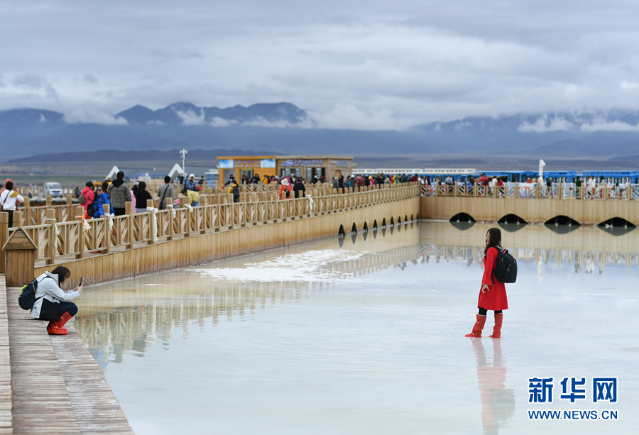 游客在茶卡天空壹號(hào)景區(qū)內(nèi)游覽。新華網(wǎng) 宋忠勇 攝