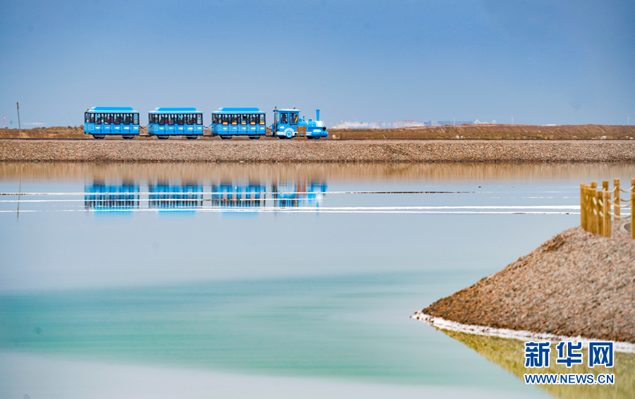 一列觀光火車從茶卡天空壹號(hào)景區(qū)內(nèi)經(jīng)過(guò)。新華網(wǎng) 宋忠勇 攝