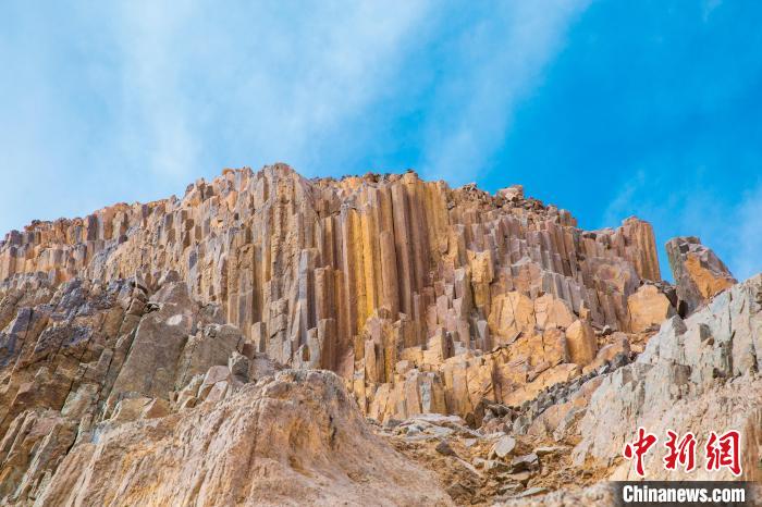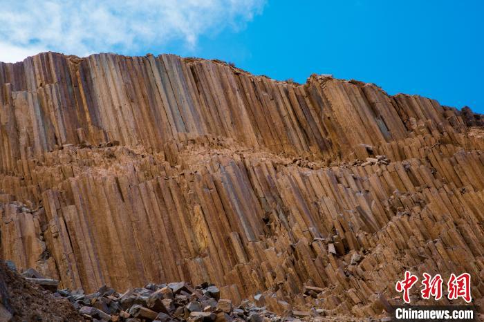 青海發(fā)現(xiàn)距今2.2億年火山巖柱狀節(jié)理群 酷似“巨锏”立山巔