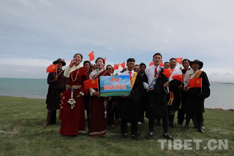 中國(guó)西藏網(wǎng)訊 6月30日,位于黃河源頭的青海省玉樹(shù)藏族自治州曲麻萊縣麻多鄉(xiāng)扎加村3個(gè)牧民小組的120余名牧民來(lái)到扎陵湖畔,慶祝中國(guó)共產(chǎn)黨成立100周年,參加紅歌比賽。