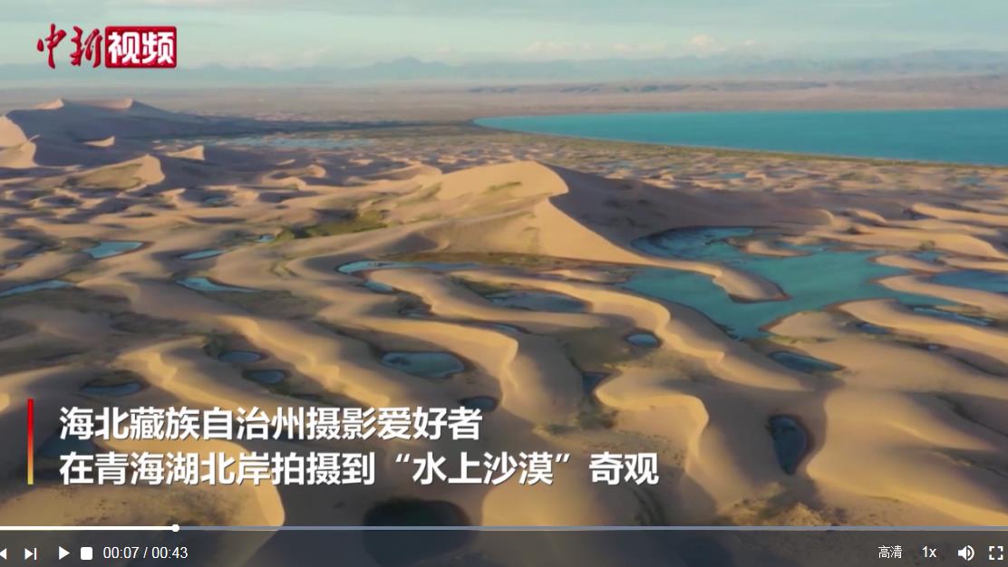 青海湖北岸現(xiàn)“水上沙漠”奇觀