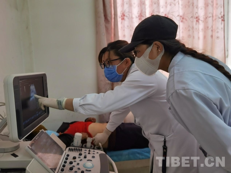 圖為李亞麗為病人做B超檢查 (組委會(huì)供圖)