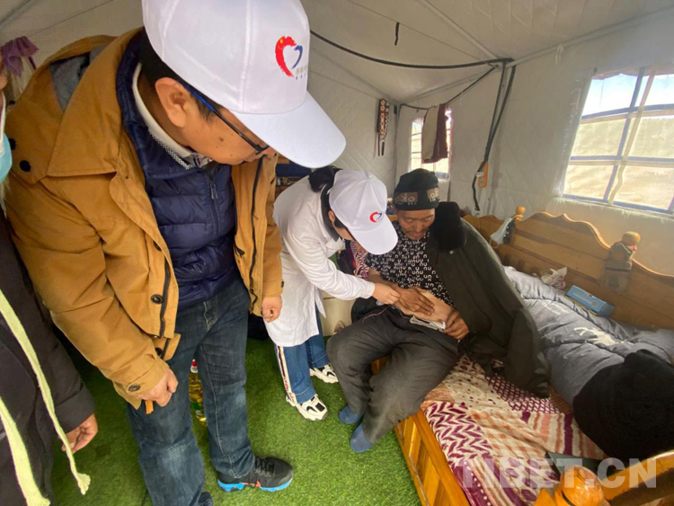 兩天來(lái),瑪多余震不斷、陰晴不定,醫(yī)生們克服各種不適,兵分幾路,分別在縣醫(yī)院、噶旦村瑪查理安置點(diǎn)、扎陵湖鄉(xiāng)安置點(diǎn)、黃河鄉(xiāng)唐格瑪村醫(yī)療點(diǎn)進(jìn)行義診和帶教查房。除此之外,由6名專家組成的醫(yī)療小組還走進(jìn)7戶當(dāng)?shù)鼐用窦抑校瑤е幤泛褪秤糜?、棉被等生活用品,給病患之家送去溫暖。