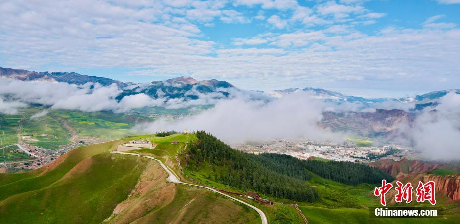 7月11日,航拍夏日的祁連山國家公園青海片區(qū)。綠意蔥蔥的祁連林海與遠處一座座連綿不斷的雪山,構(gòu)成了一幅美麗畫卷。(無人機照片) 中新社記者 李江寧 攝