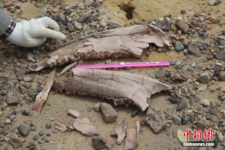 7月10日,從青海省地質調查院獲悉,由該院承擔的“青海省古生物化石產地示范調查”項目,在青海省內發(fā)現(xiàn)疊層石、古脊椎動物和魚類3處具有較高科學研究價值的化石產地。圖為犀牛下頜骨。 保廣普 攝