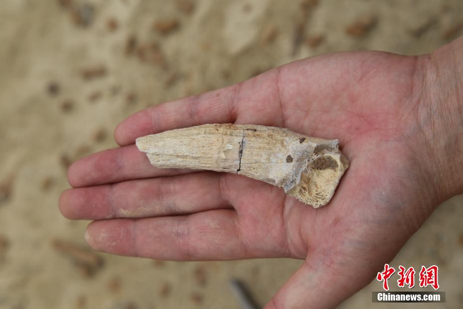 專家表示,本次發(fā)現(xiàn)的3處化石產地為產出地區(qū)區(qū)域地史演化研究、古地理環(huán)境分析、地層時代厘定等提供了重要科學依據(jù)。圖為真象腿骨化石。 保廣普 攝