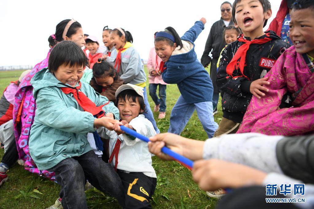 暑假來臨,在海拔3000多米的甘肅省甘南藏族自治州瑪曲草原上,瑪曲縣河曲馬場小學的孩子們在老師的帶領下,暫別課堂學習,用豐富多彩的游戲開啟歡樂暑假時光。