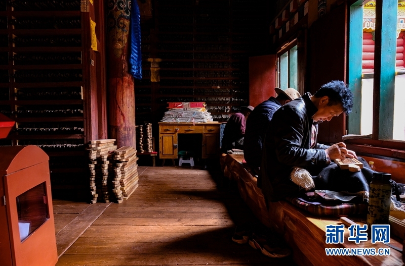 7月20日,四川德格,印經(jīng)院內(nèi)忙碌的印刷工人。中新社記者 劉忠俊 攝