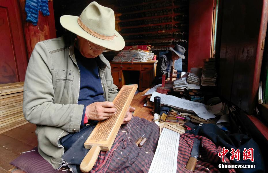 7月20日,四川德格,印經(jīng)院印刷工人進(jìn)行雕版印刷。中新社記者 劉忠俊 攝