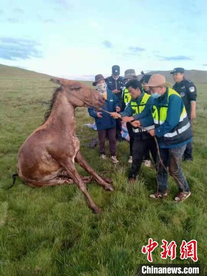 圖為生態(tài)管護隊正在解救藏野驢?,敹嗫h委宣傳部 供圖