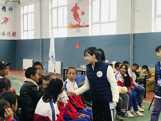 給孩子上課的6名小老師都來自“同心·共鑄中國心”青海果洛行成長營公益項目,均是志愿者子女,平均年齡18歲。
