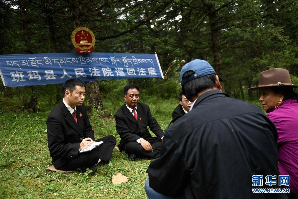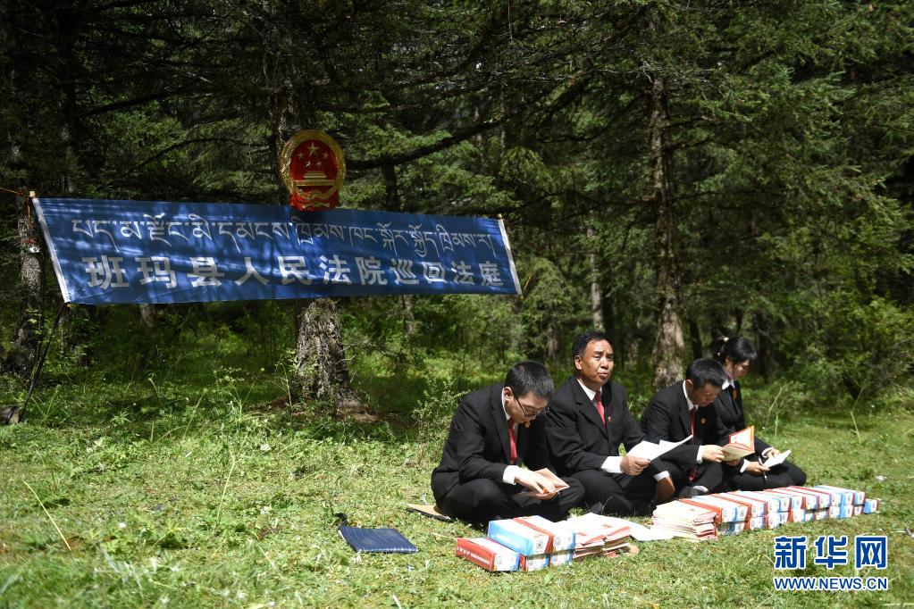 8月7日,班瑪縣人民法院巡回法庭以模擬法庭形式開展法治宣傳。新華社記者 李占軼 攝