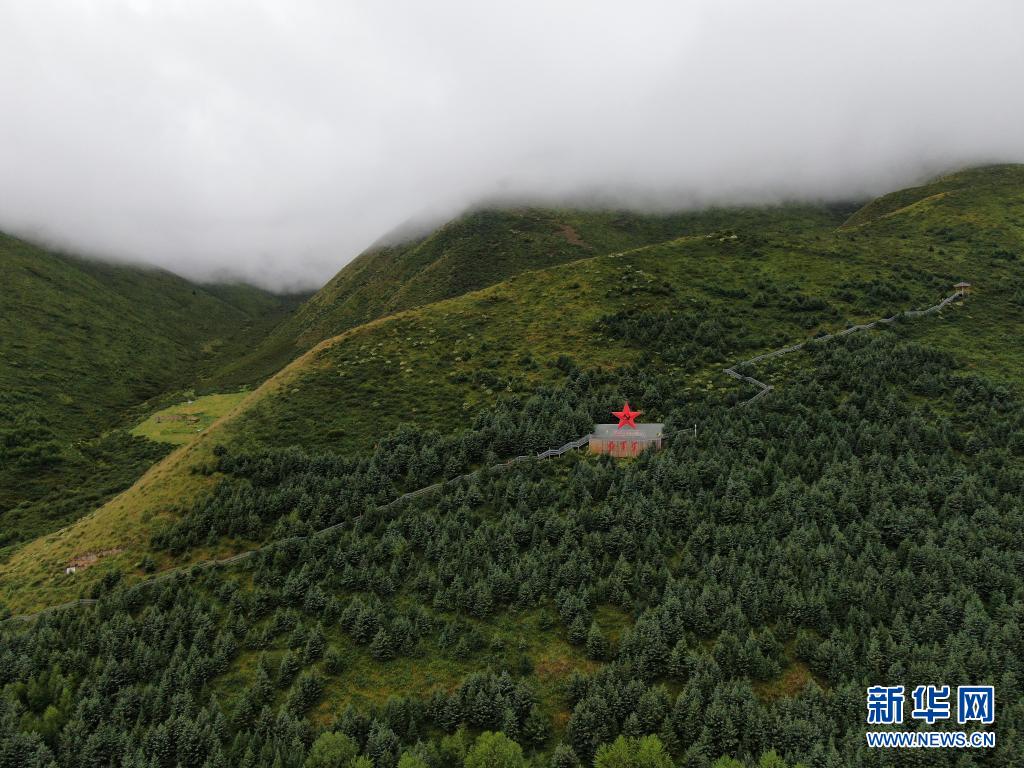 8月8日在青海省果洛藏族自治州班瑪縣境內(nèi)拍攝的一處觀景臺(無人機(jī)照片)。新華社記者 李占軼 攝
