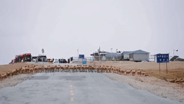 這是遷徙藏羚羊群經(jīng)過青藏公路可可西里五道梁路段。(素材由三江源國(guó)家公園管理局長(zhǎng)江源園區(qū)可可西里管理處提供)