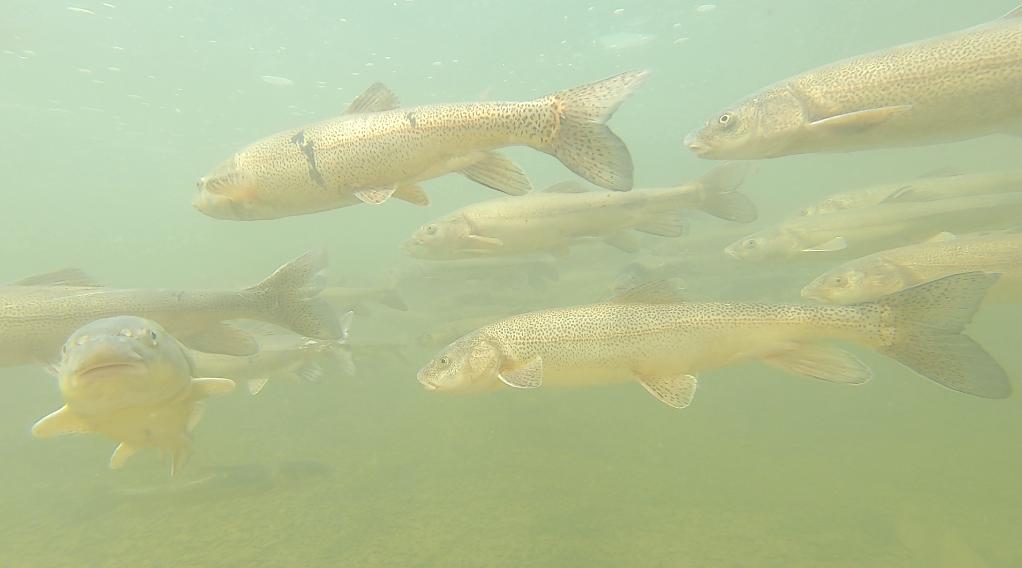 這是在長江源使用水下相機拍攝的自然條件下小頭裸裂尻魚繁殖群體。