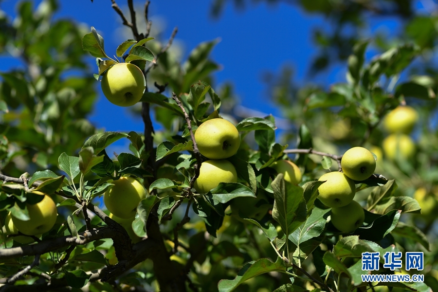 楊林春的農(nóng)家院里,即將成熟的蘋(píng)果。新華網(wǎng) 潘彬彬 攝