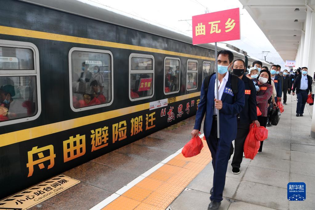 當日,甘肅省甘南藏族自治州舟曲縣9個鄉(xiāng)鎮(zhèn)的200戶500余名居民乘坐中國鐵路蘭州局集團有限公司開行的舟曲避險搬遷“感恩號”專列前往蘭州新區(qū)安家。據(jù)介紹,今年以來,甘肅省啟動舟曲縣地質(zhì)災害避險搬遷工作,計劃年底前搬遷770戶2960人到蘭州新區(qū)安家,此次搬遷的200戶居民是首次借助鐵路專列運輸形式實施搬遷。