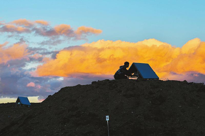 2018年8月14日,科研人員在海子山上安裝觀測儀器。