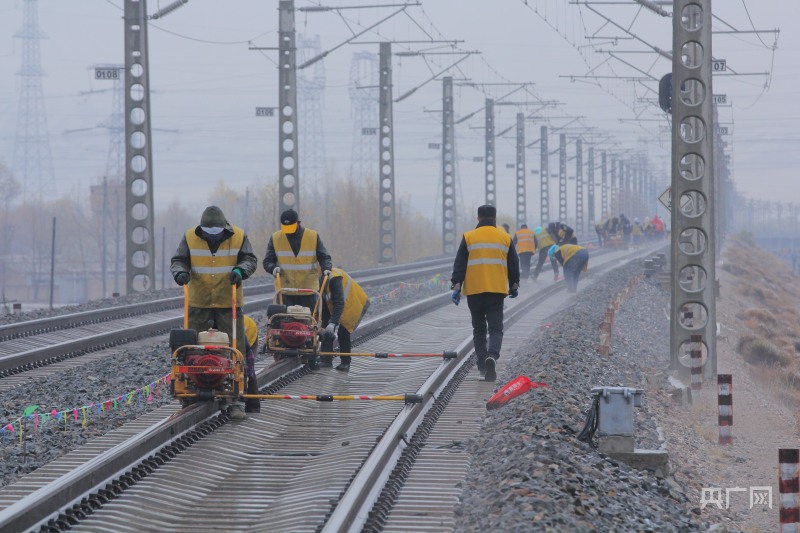 深秋時節(jié),在青海省海西蒙古族藏族自治州,巴音河畔的德令哈市雨雪飄揚。在鄰近德令哈站的鐵路區(qū)間上,170余人正在火熱工作中。