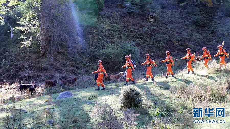 森林消防員開展攜裝巡護(hù)(攝于11月5日)。新華網(wǎng)發(fā)(云南省森林消防總隊(duì)迪慶大隊(duì)供圖)