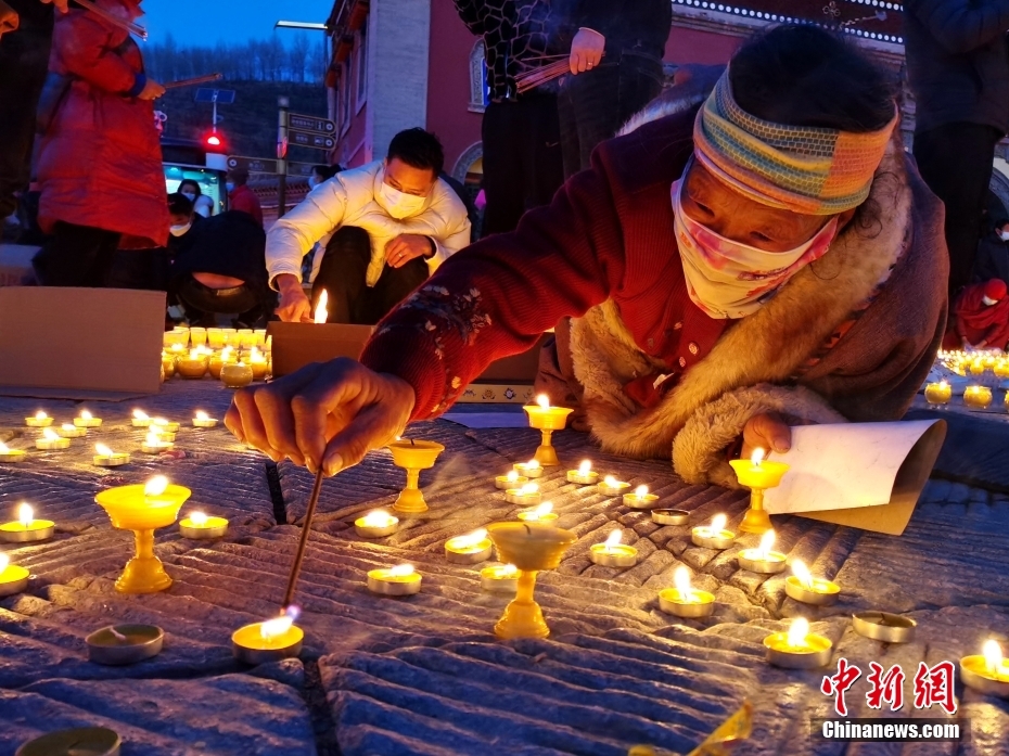 圖為青海塔爾寺燃燈現(xiàn)場(chǎng)。 中新社記者 張?zhí)砀?攝
