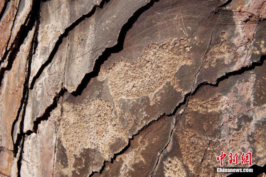 圖為此次發(fā)現(xiàn)的古巖畫(huà)遺存。(12月17日拍攝) 中新社發(fā) 江巴然丁攝