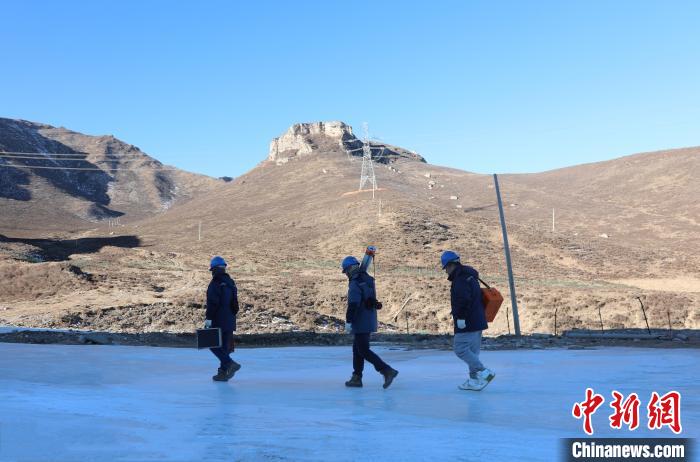 圖為國網(wǎng)青海檢修公司輸電運檢人員李承鴻、楊濤、梁威對750千伏拉寧線開展春節(jié)前特巡。朱毅然 攝