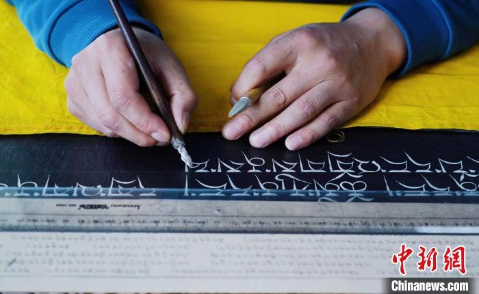 28歲的彭合日是傳習(xí)中心的一名優(yōu)秀學(xué)員。“來(lái)這里工作已經(jīng)七年時(shí)間。金汁書寫經(jīng)文是藏族的傳統(tǒng)文化,但在特制的藏紙上抄寫經(jīng)文還是有難度。我們要根據(jù)紙的尺寸,設(shè)定藏文字體大小,老師就一筆一畫給我們教,直到能獨(dú)立抄寫經(jīng)文?!睂?duì)于這份家門口的工作,彭合日很滿意,每個(gè)月能拿到4000多元工資,抄寫經(jīng)書越多工資也會(huì)相應(yīng)有增加,這也將是自己走向社會(huì)的一門手藝。