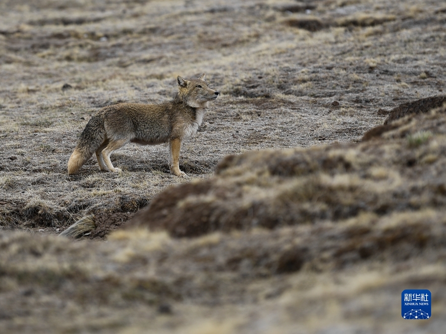 2021年5月25日,一只藏狐在三江源國(guó)家公園黃河源園區(qū)內(nèi)活動(dòng)。新華社記者 張龍 攝