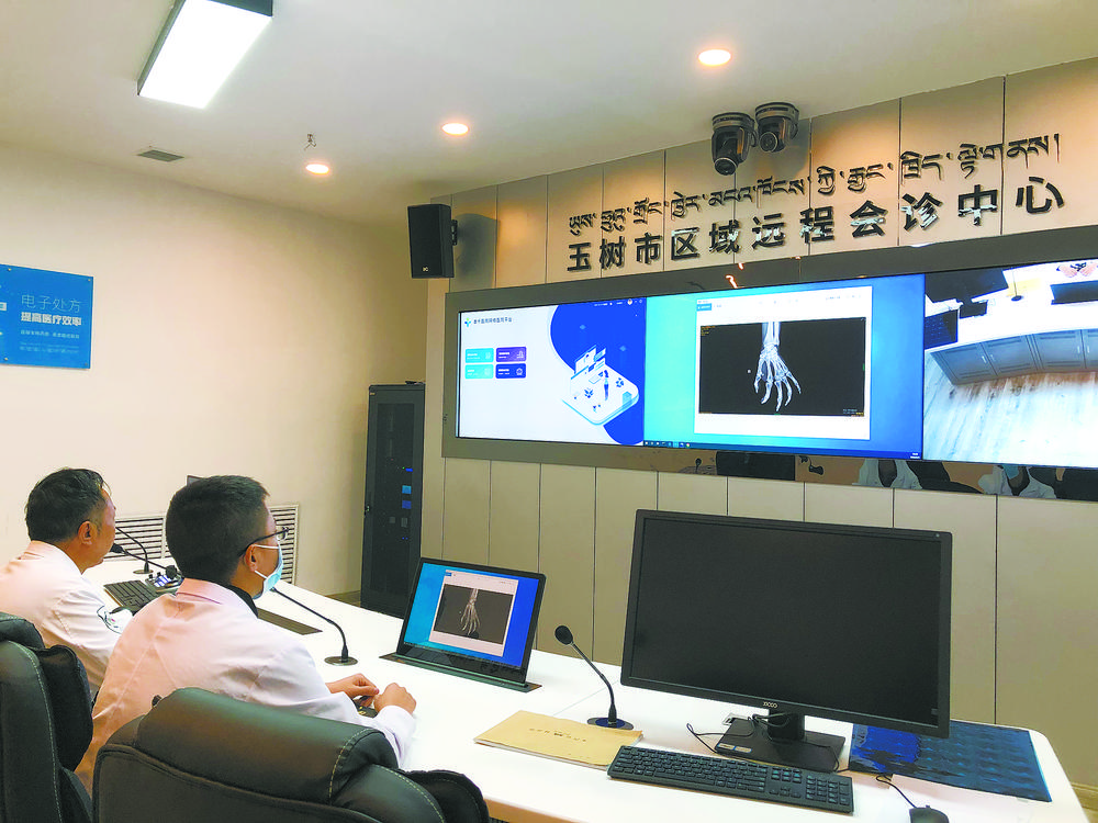 玉樹市八一醫(yī)院內(nèi)的玉樹市區(qū)域遠程會診中心。張子涵 攝