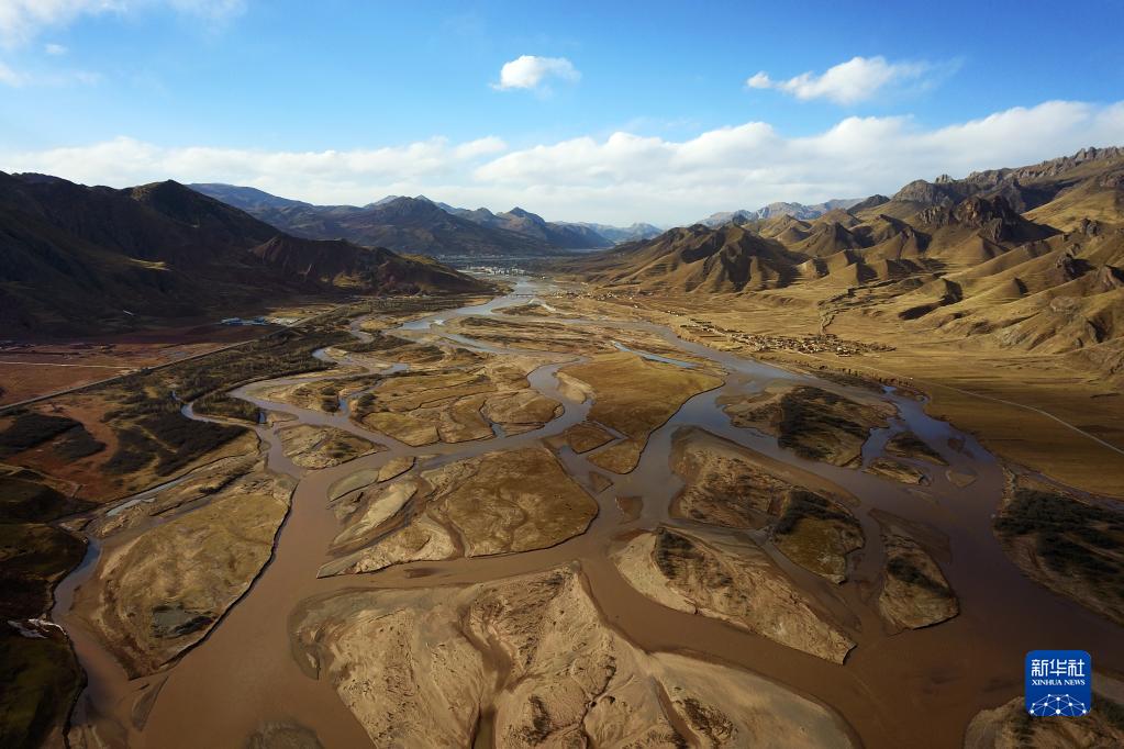 這是2022年3月20日在青海省玉樹藏族自治州囊謙縣境內拍攝的瀾滄江上源扎曲河(無人機照片)。新華社記者 范培珅 攝