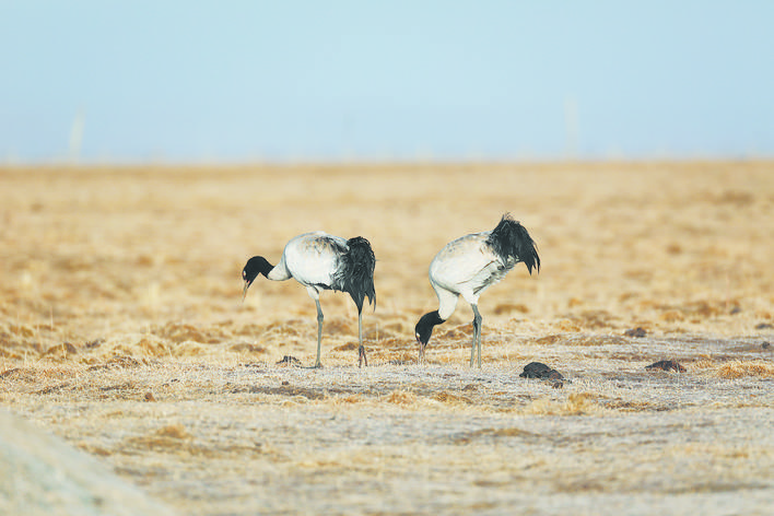 3月28日,早上八點(diǎn)左右,記者來(lái)到監(jiān)測(cè)站外,遠(yuǎn)遠(yuǎn)就看見(jiàn)一對(duì)黑頸鶴在悠閑地散步。如科夫婦笑容滿(mǎn)面,手捧哈達(dá),一邊呼喚著“阿克窮拉(藏語(yǔ),意為親愛(ài)的黑頸鶴),你們一路辛苦啦”,一邊緩緩地走上前去。讓人驚訝的是,黑頸鶴夫婦并未驚動(dòng),心領(lǐng)神會(huì)地踱步觀望,轉(zhuǎn)而低頭覓食。