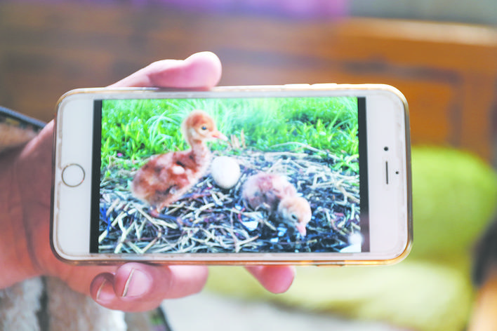 手機(jī)拍攝的黑頸鶴雛鳥(niǎo)