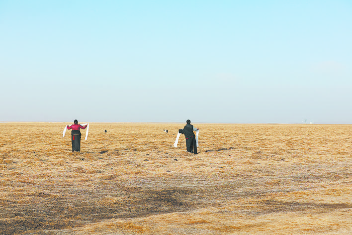 年復(fù)一年,如科每天帶上工作證、望遠(yuǎn)鏡、茶水和干饃饃,從他居住的觀測(cè)站出發(fā),騎著摩托車(chē)巡護(hù)濕地;他的妻子沿著湖泊撿拾垃圾,守護(hù)著黑頸鶴的棲居環(huán)境,守護(hù)著野生動(dòng)物的美好家園。