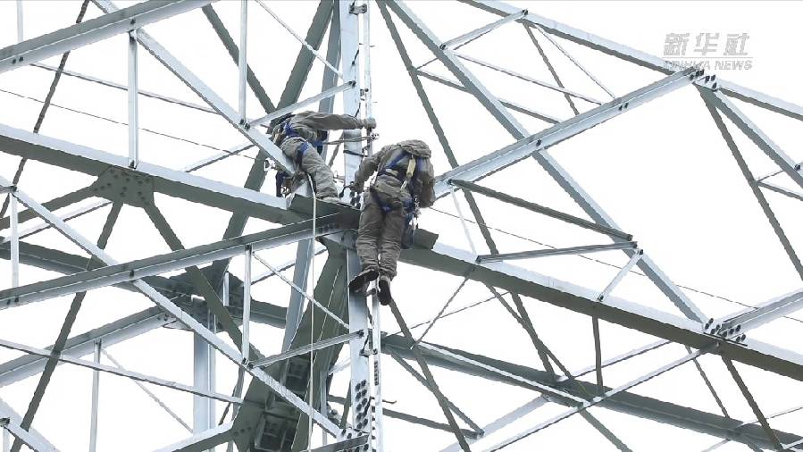 圖為國(guó)網(wǎng)青海超高壓公司輸電專業(yè)人員正在開(kāi)展750千伏青塔I線14號(hào)鐵塔消缺工作。 董慶芳 攝