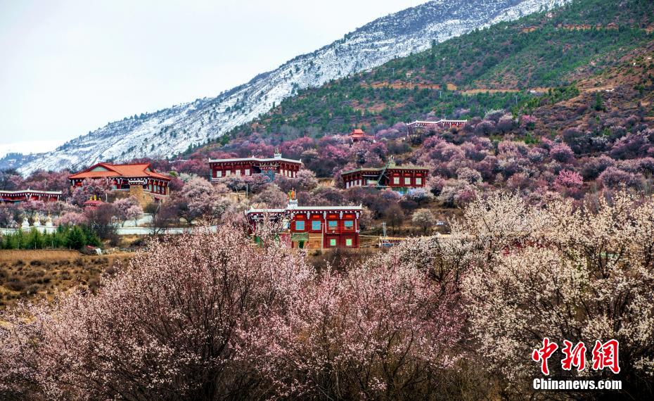 4月,艷陽下,四川省甘孜州道孚縣麻孜鄉(xiāng),一簇簇粉紅色的杏花綻放,將高原藏家村寨裝點一新,繁花似錦,一派生機(jī)勃勃的景象。何行銘 攝