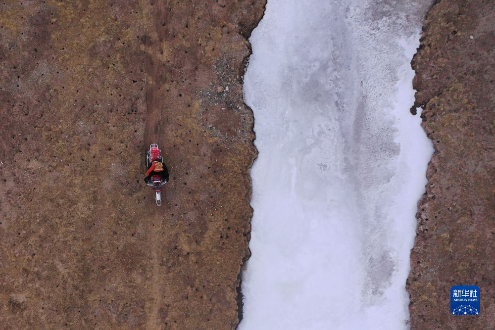 4月21日,在青海省玉樹藏族自治州曲麻萊縣麻多鄉(xiāng)約古宗列曲附近,生態(tài)管護員在巡護。新華社記者 張龍 攝