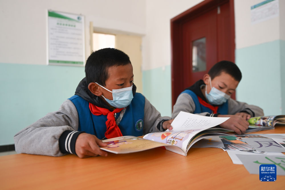 4月22日,青海省玉樹藏族自治州曲麻萊縣巴干鄉(xiāng)寄宿制小學的學生在課堂上學習。新華社記者 張龍 攝